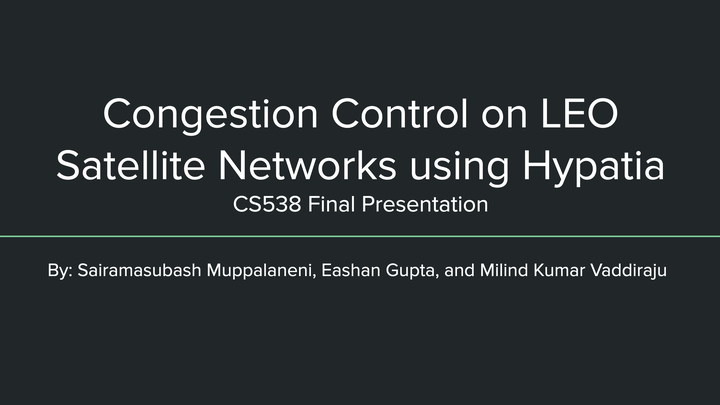 LEO satellite networks are rapidly growing with the rise of Starlink, Amazon Kuiper and Telesat. Hypatia allows us to study these networks with modules that simulate satellite movement, routing and simulate packet flow using ns-3. In this work, we modify TCP Reno to utilize the physical distance between ground stations to achieve greater fairness when different flows compete. We also integrate Copa into Hypatia’s ns-3 modules and evaluate its performance.